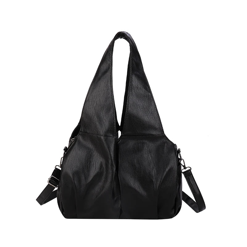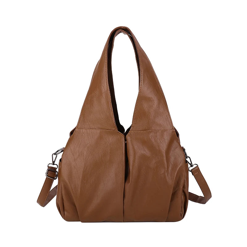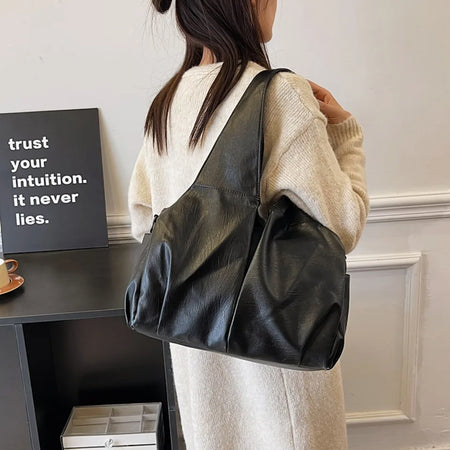 PU-läder axelväska för kvinnor, stor kapacitet hobo shopper tote, enfärgad pendlarväska