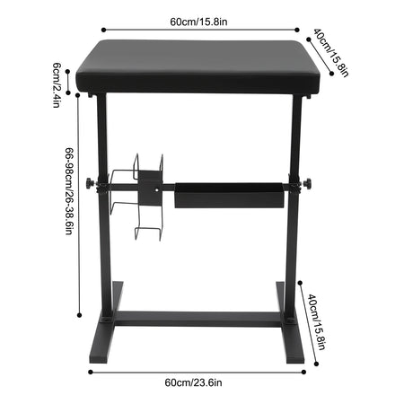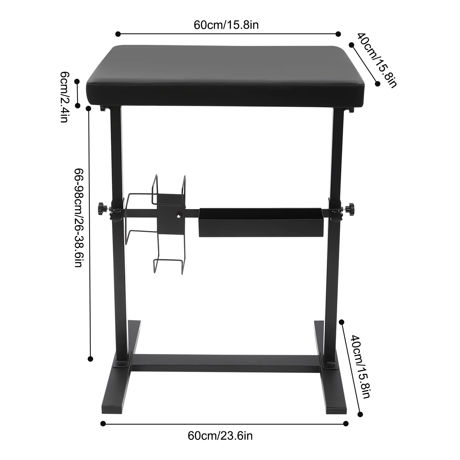Designad för professionella tatueringsuppsättningar, Black Tattoo Armrest Stand är ett hållbart armstöd med justerbar höjd och vinkel som växer med din verksamhet. En robust järnram, en bekväm PU-panel och ett svampfyllt armstöd ger stabilitet och komfort under timmar av tatuering. Den 60x40 cm stora bänkskivan ger gott om plats för alla dina verktyg, medan armstödsdynan på 2,36 tum tjock minskar handtrötthet och skakningar, vilket hjälper dig att arbeta med precision. Armstödet erbjuder justerbar höjd från 66 cm till 98 cm och en gångjärnsjustering av vinkeln för att passa olika konstnärspreferenser och kundpositioner. En fristående design med halkfria fötter håller stället stadigt på alla golv, och ett inbyggt ställ plus förvaringsfack hjälper dig att hålla bläck, nålar och borstar inom räckhåll. Med en snygg svart finish och korrosionsbeständig spraymålad ram passar det in i moderna salonger och studior. Lätt att rengöra med en fuktig trasa.