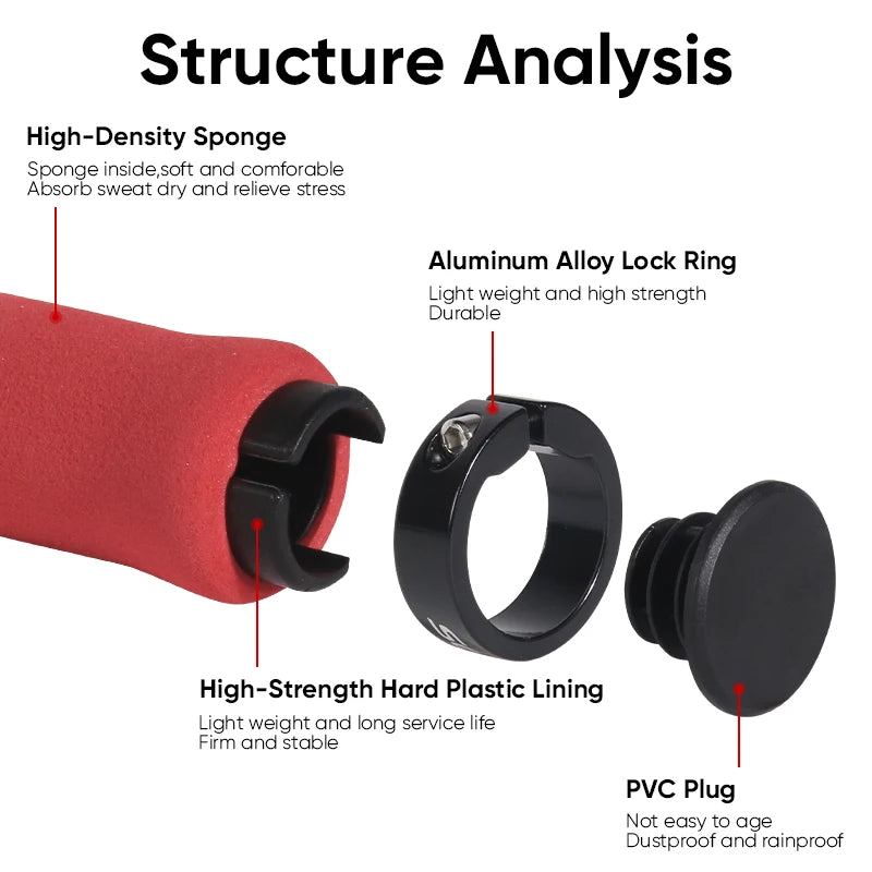 BUCKLOS MTB Styrhandtag Med Högdensitetssvamp, Halkskydd, Stötdämpande, Aluminium Låsringsring