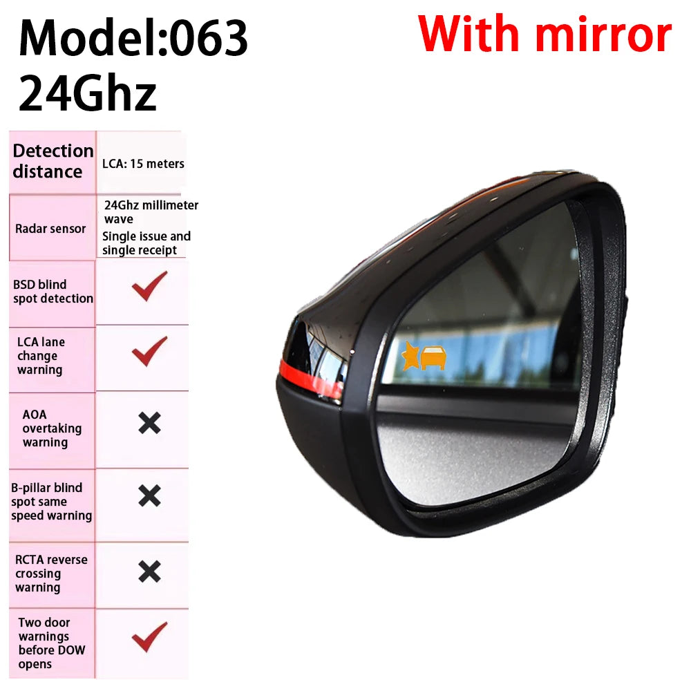 - Kompatibilitet: LCA filbytesassistans, BSD dödvinkelövervakning, AOA aktiv omkörning, B-stolpe dödvinkelvarning, RCTA backkorsningsvarning, DOW dörröppningsvarning (valfritt)