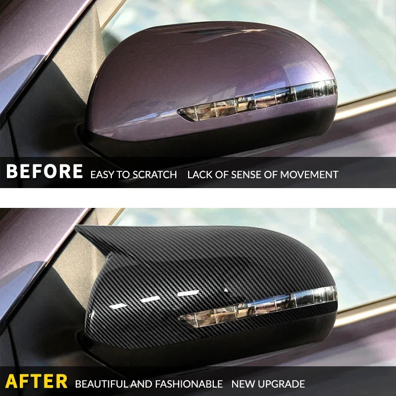 - Förbättrar exteriörens stil med en elegant kolfiberfinish samtidigt som den hjälper till att skydda sidospeglar från repor och mindre stötar.