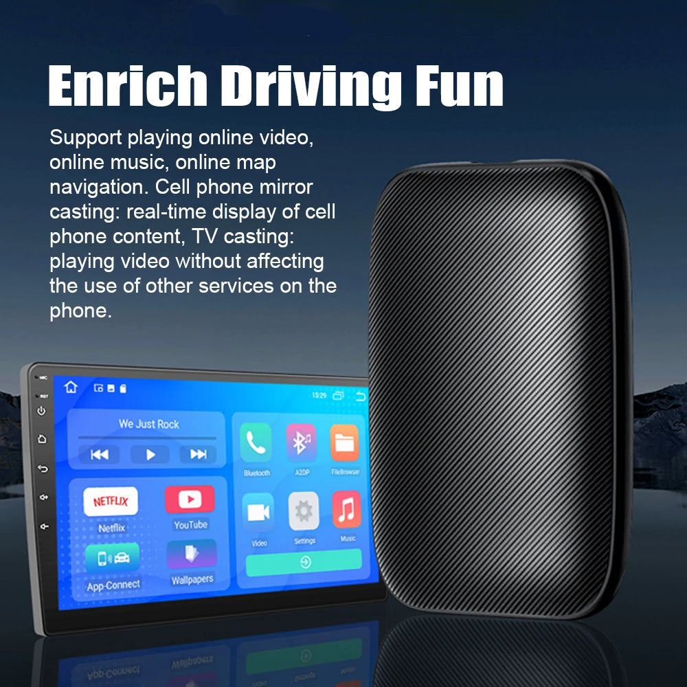 Uppgradera din bils infotainment med Car Wireless Playbox för Android Auto Bluetooth 5 WiFi från Mastfuyi. Denna kompakta enhet förvandlar ditt fordon till ett säkert, slutet Android-system och låser upp trådlös Android Auto och Apple CarPlay, samtidigt som den bevarar rattkontroller och pekskärmsfunktionalitet. Njut av säkrare navigering, handsfree-samtal och underhållning på språng med snabb trådlös anslutning.