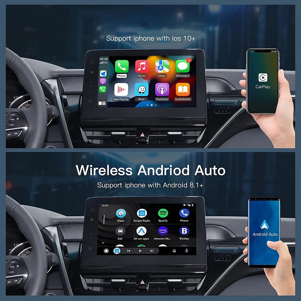 - Förvandla din bil till ett smart infotainment nav: använd trådlös Android Auto eller Apple CarPlay för navigering, samtal och musik utan kablar.