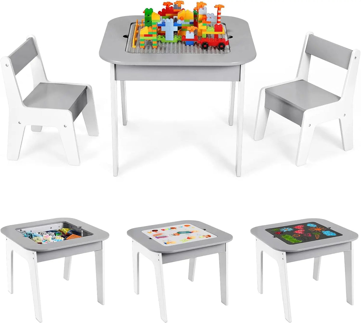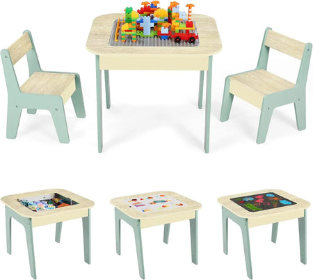 Trä Barn Bord 2 I 1 Byggkloss Bordsskiva Stolar