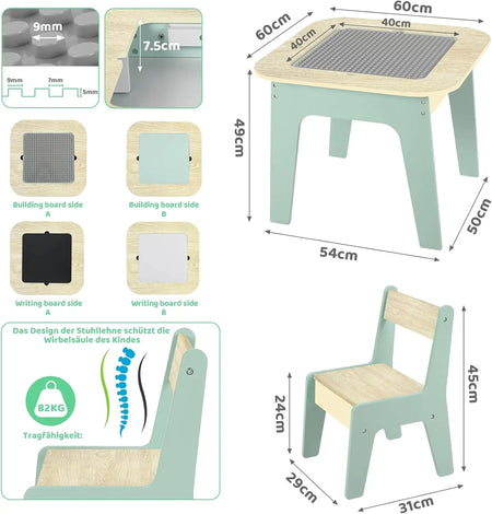 Möt ett mångsidigt, platsbesparande mittpunkt för lek och lärande: Wooden Kids Table 2 In 1 Building Block Tabletop Chairs. Tillverkad av trä med en robust MDF-kärna, växer detta minimalistiska bordset med ditt barn från tidiga hantverk till lästid och familjemåltider. Dess genomtänkta design stödjer kreativitet, fokus och ordning, vilket gör vardagliga aktiviteter enklare och roligare.