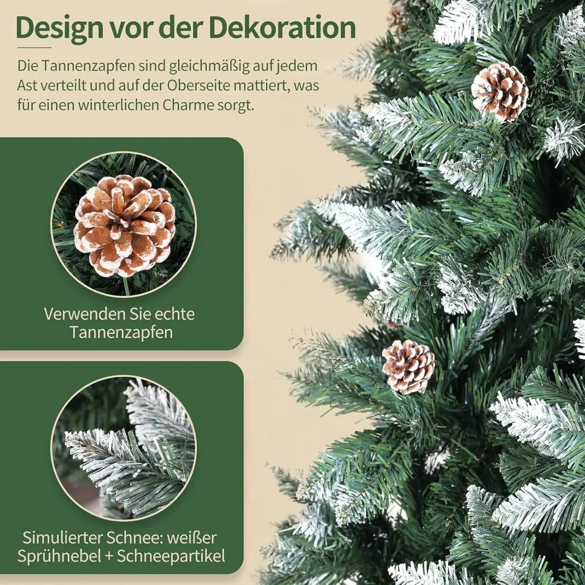 - Modellnummer: Konstgjord julgran med kottar, snö