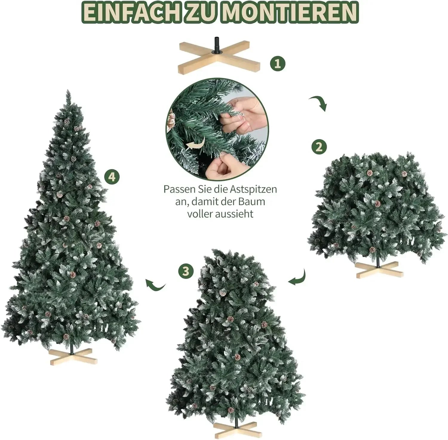 På grund av förpackningskompression kan den nyinstallerade julgranen behöva några dagar för att bli helt fluffig och lös. Vänligen ge grenarna tid att lägga sig i sin naturliga form.