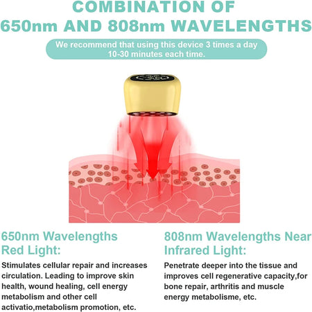 Möt Cold Laser Therapy Vet Device for Pets 2x808nm Pain Relief — en bärbar, läkemedelsfri lösning designad för att lindra smärta, påskynda sårläkning och stödja återhämtning för hundar, katter, hästar och andra älskade djur. Denna enhet kombinerar 2x808nm djupverkande dioder med 12x650nm rött ljus för att leverera riktad terapi för både ytliga och djupare vävnader. 650nm-ljuset främjar kollagenproduktion, minskar inflammation och ökar blodcirkulationen, medan 808nm-ljuset tränger djupare för att öka ämnesomsättningen och cellernas livskraft, vilket hjälper muskelåterhämtning och sårläkning. Säker, smärtfri och utan biverkningar, är den idealisk för hemmabruk såväl som veterinärbruk.