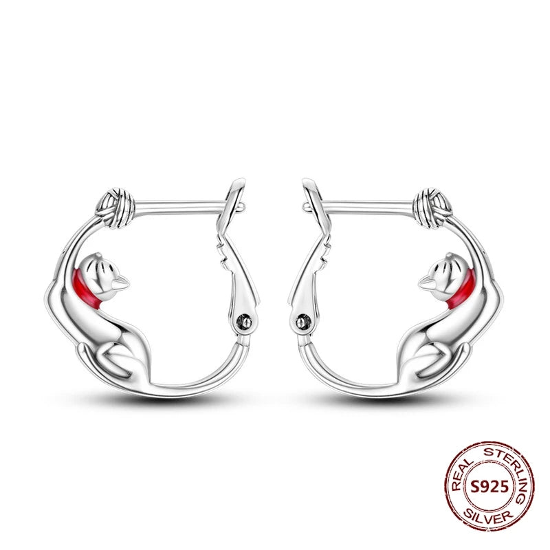 Eleganta örhängen i 925 sterling silver med hundmotiv, zirkon och djurdesign för kvinnor