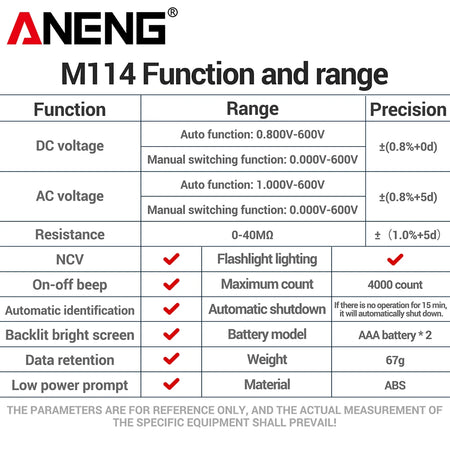- Modell: ANENG M114 Digital Smart Multimeter Tester