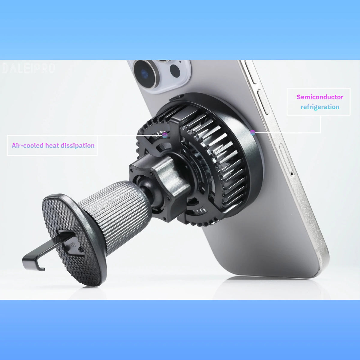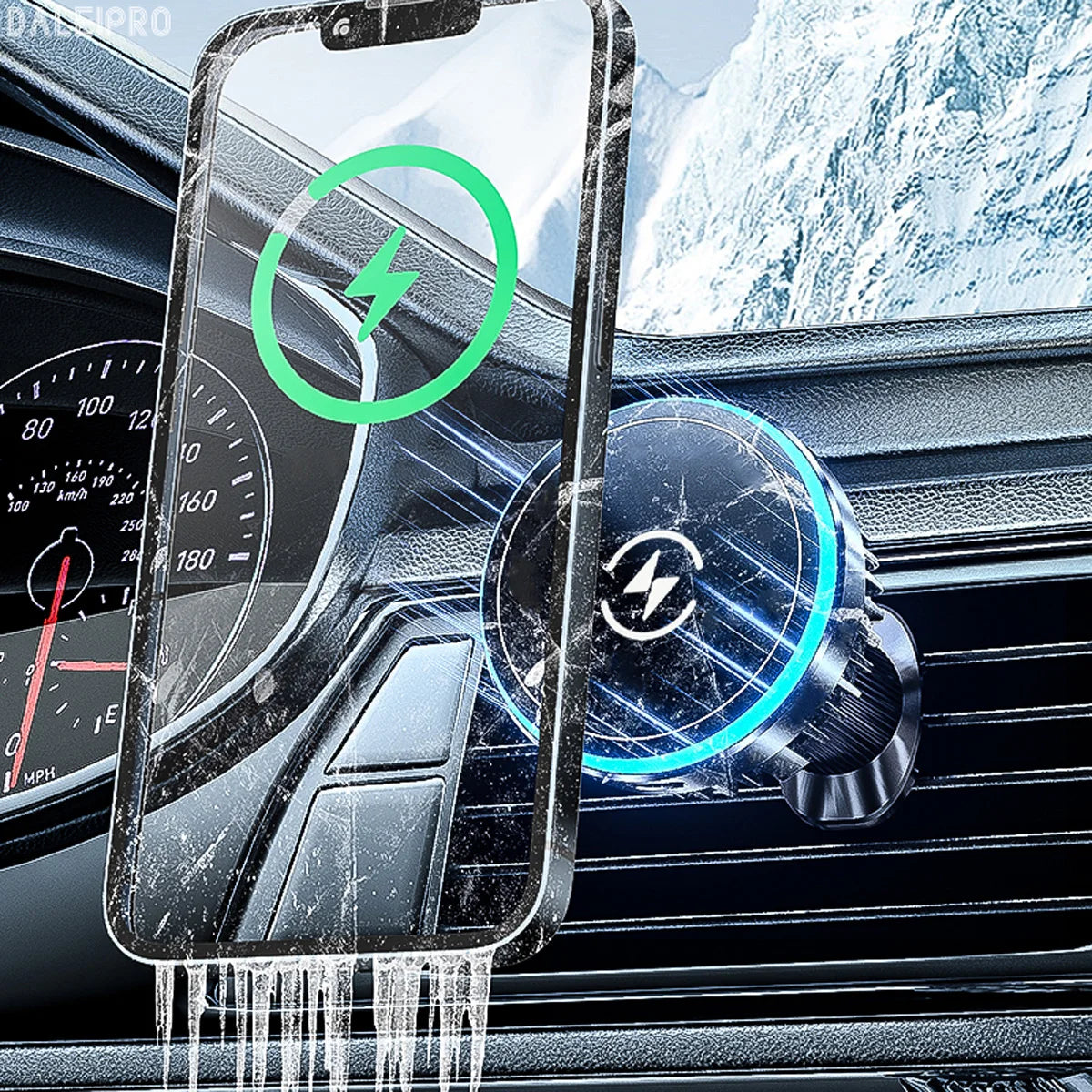 Direktkontakt kylning MagSafe biltelefonhållare laddare är en ventilmonterad, premiumhållare designad för att hålla din enhet säker och sval medan du kör. Byggd med hållbar aluminium och ABS, ger den pålitligt stöd och effektiv trådlös laddning. MagSafe-kompatibiliteten säkerställer snabb magnetisk justering och bekväm laddning, medan den justerbara, roterbara armen ger en bekväm visningsvinkel. Med en handsfree-design, enhandsgrepp och en snabbutlösningsknapp kan du montera, justera och ta bort din telefon på sekunder—även på guppiga vägar. Detta kompakta, robusta fäste är utformat för daglig användning och resor, vilket hjälper din enhet att förbli svalare med direktkontakt kylningsteknik.