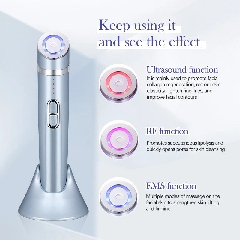 Enheten använder avancerad bipolär teknik i kombination med huduppstramande funktioner. Varje behandlingsområde tar bara 5 minuter, vilket gör det till ett snabbt och enkelt tillskott till din dagliga rutin. Med regelbunden användning kan du rikta in dig på vanliga bekymmer runt ögonen—minskad svullnad, minskade påsar under ögonen, ljusare mörka ringar och slätare hud—vilket hjälper dig att se mer vaken och ungdomlig ut.