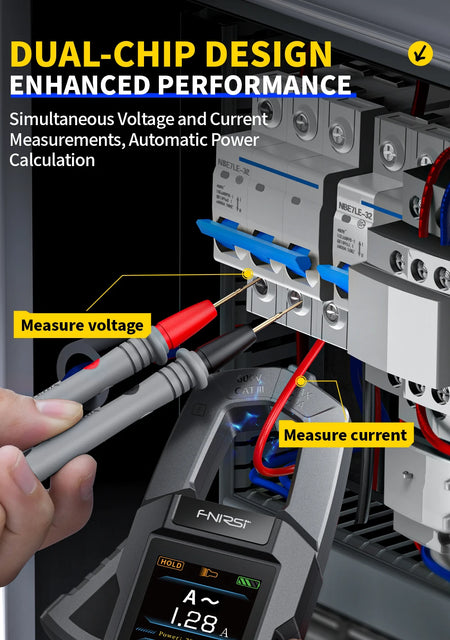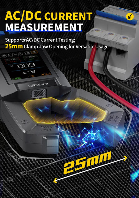 FNIRSI DMC-100 är en högprecisions, 10 000-räknare klämma mätare designad för att hantera både DC- och AC-mätningar med lätthet. Med ett brett spänningsområde upp till 750V AC och ström upp till 600A, är det ett mångsidigt verktyg för ingenjörsunderhåll, laboratorieforskning, fordonsrenoveringar och elektriska diagnoser hemma. Den 2,0-tums fullfärg TFT-skärmen (240 × 320) presenterar avläsningar tydligt med ett intuitivt användargränssnitt och datakurvor för snabb förståelse vid en blick. DMC-100 stöder tre mätlägen—allmänt, vågformsvisning och effektberäkning—så att du kan växla till det läge som passar din uppgift bäst, oavsett om du spårar energiförbrukning, inspekterar vågformer eller helt enkelt kontrollerar spänning och ström. Ett kompakt 3,7V 1500mAh batteri möjliggör långvarig användning, medan funktioner som NCV icke-kontakt strömdetektion, nollbrand ledningsidentifiering, inbyggd ficklampa, skärmbakgrundsbelysning och datalagring gör dagliga diagnoser säkrare och mer effektiva. Med USB Typ-C för laddning och datatransfer, automatisk avstängning, anpassningsbara temperaturenheter och möjlighet till firmwareuppgradering, är DMC-100 en pålitlig, allroundassistent för elektroniskt underhåll i alla projekt.