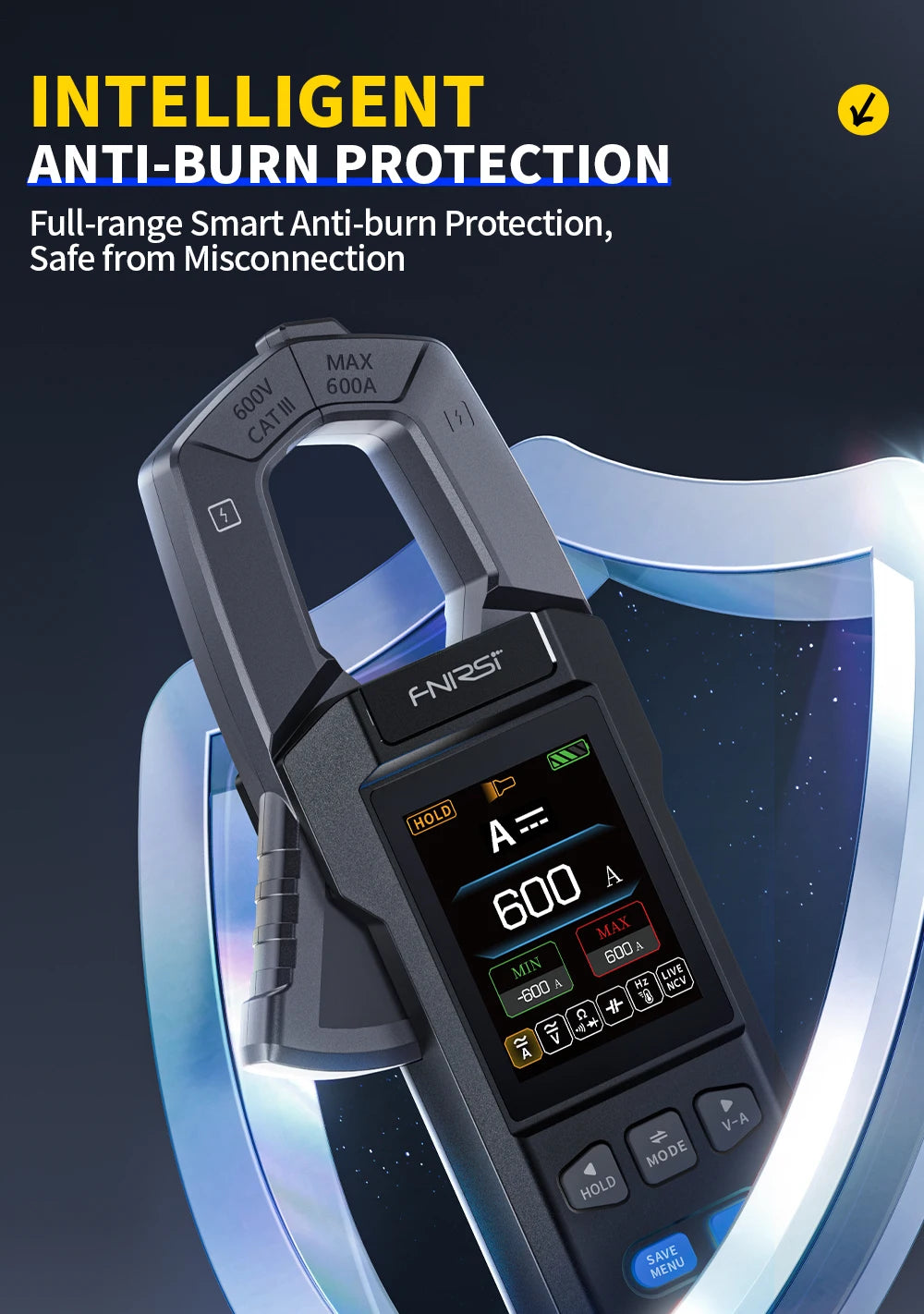 - Använd lämpliga säkerhetsprocedurer när du testar högspänning eller ström; föredra NCV-läget för live-linjens screening först.