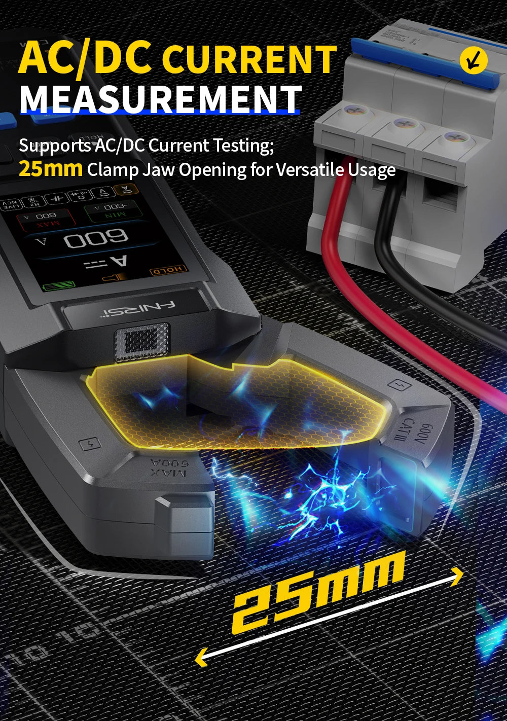 FNIRSI DMC-100 DC/AC Klämma Mätare, 750V, 10000 Räkningar, 600A USB Tester