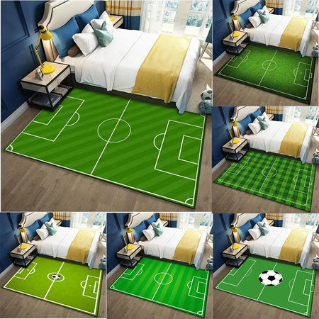 Fotbollstema fotbollsplan matta för vardagsrum, 100 procent polyester, modern dekoration