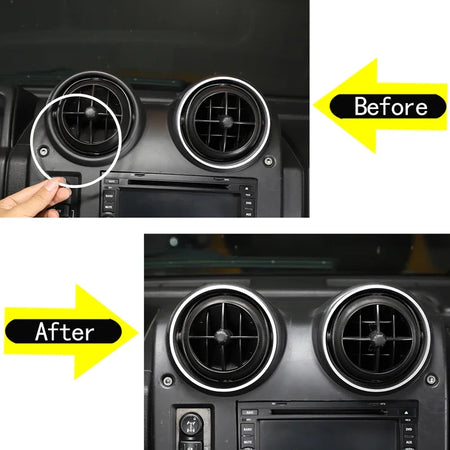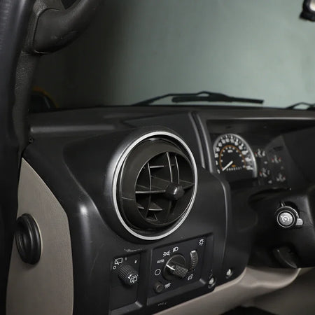 Uppgradera kupén i din 2003-2007 Hummer H2 med Aluminiumlegering Silver AC-utloppsdekorring. Detta 6-delars set ger en premium aluminiumfinish till din interiör, skyddar AC-utloppet från repor och slitage samtidigt som det förbättrar det övergripande utseendet på din instrumentbräda. Tillverkade av högkvalitativ aluminiumlegering och med silverfinish är dessa ringar byggda för att hålla och tåla daglig användning. Baksidan har biltejp för snabb, verktygsfri installation, vilket ger ett sömlöst, fabriksinspirerat utseende. Producerade i Fastlandskina i en ISO 9001-certifierad anläggning, kombinerar dessa ringar stil, hållbarhet och enkel passform för din H2.