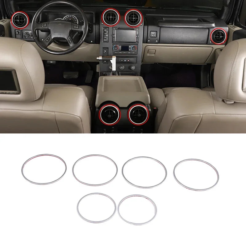 - 6 stycken aluminiumlegering silver AC-utloppsdekorringar för 2003-2007 Hummer H2