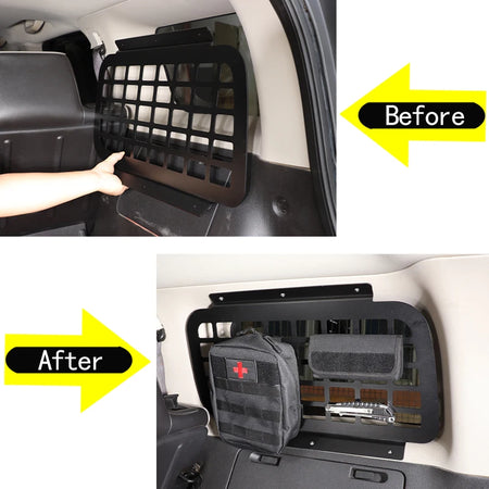 Uppgradera din Hummer H3 från 2005-2009 med detta Aluminium Svart Bagageutrymmesförvaringsställ. Tillverkat av högkvalitativ aluminiumlegering, det ger praktisk sidoförvaring på båda sidor av bagageutrymmet och hjälper dig att hålla utrustningen organiserad. Den slanka svarta finishen skyddar interiöra ytor från repor och slitage samtidigt som den förbättrar det visuella intrycket. Producerat i en ISO9001-certifierad anläggning, är denna inredningsformning för bilen byggd för hållbarhet. Stället installeras snabbt med hjälp av den bakmonterade biltejp, vilket möjliggör en verktygsfri montering på några minuter.