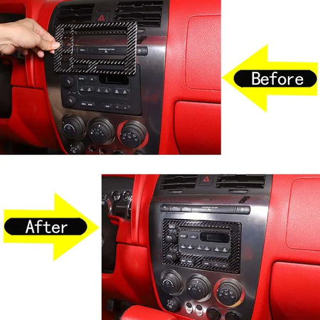Förbättra din 2005-2009 Hummer H3 interiör med Soft Carbon Fiber Center Console Sticker. Tillverkad av premium mjuk kolfiber, skyddar detta stilfulla skydd mittkonsolens displaypanel och omgivande lister samtidigt som det ger ett snyggt, exklusivt utseende. Välj mellan Carbon Fiber Black eller Carbon Fiber Red för att matcha eller accentuera din kupé, och njut av enkel, verktygsfri installation tack vare den bakre bilindustrins självhäftande tejpen.