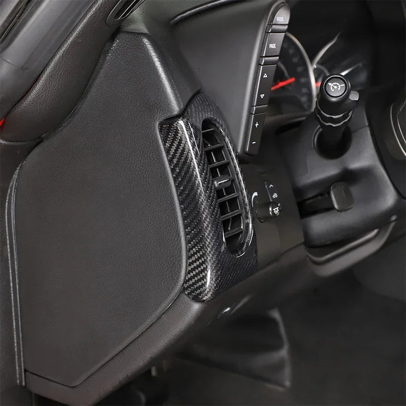 Uppgradera din Chevrolet Corvette C6-interiör med en touch av tävlingsredo stil. Dessa C6 Corvette Carbon Fiber Air Vent Frame Stickers är tillverkade av äkta kolfiber och designade för att passa sidoluftventilerna på instrumentbrädan för Corvette C6 från 2005–2013. Den premiumfinishen tillför djup och textur till din kupé, medan det hållbara biltejpklistermärket säkerställer en säker, glappfri installation. Höj din interiör med en förfinad, sportinspirerad look utan att byta ut komponenter.