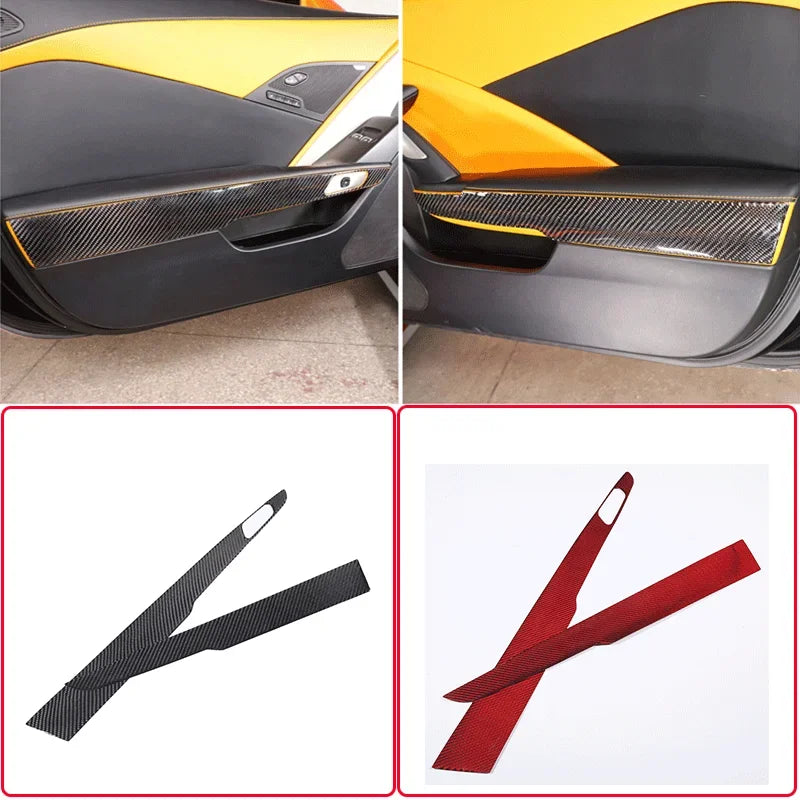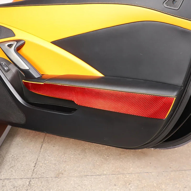 Soft Carbon Fiber Door Handle Panel Cover For Corvette C7 är en premium interiöruppgradering skapad för Chevrolet Corvette C7 2014-2019. Tillverkad av äkta kolfiber (mjuk) och avslutad i rött med en slående kolfiberväv, skyddar detta panelöverdrag området runt dörrhandtaget från repor och dagligt slitage samtidigt som det höjer bilens interiör med en sofistikerad, sportig look.
