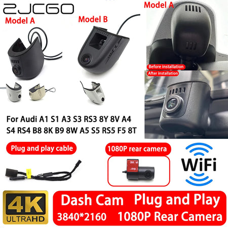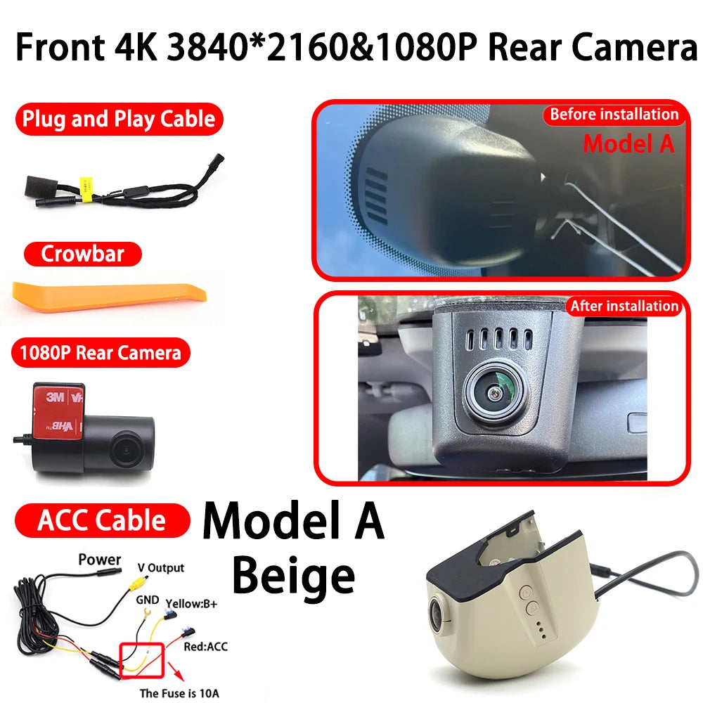 Högupplöst Dash Cam 4K Fram- och Bak med WiFi Plug and Play Inspelare för Audi A4