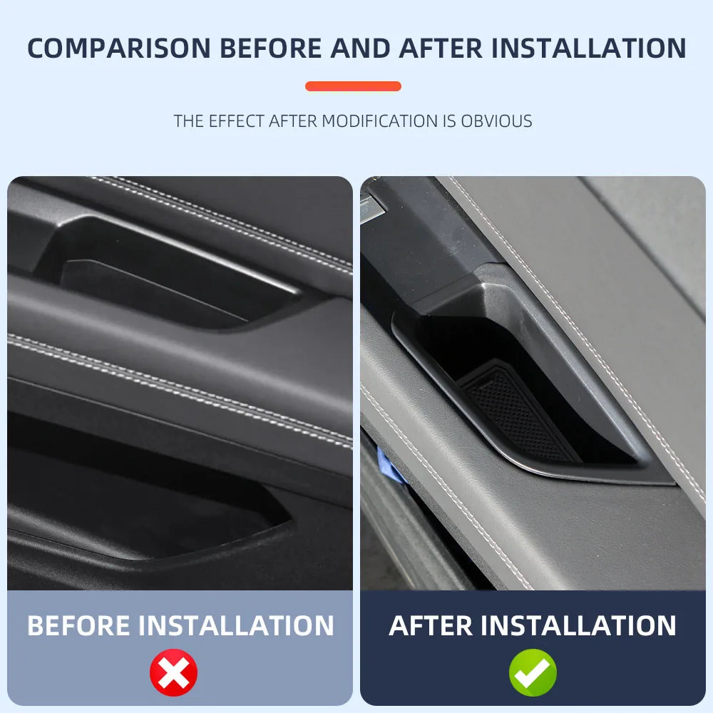 Uppgradera din Audi Q4 E-Tron interiör med Front- och Bakdörrsförvaringsboxsetet, tillverkat av hållbar ABS och avslutat med en mjuk silikonmatta. Designad för att passa Audi Q4 E-Tron modeller från 2019 till 2024, lägger detta 4-delade set till bekväm, lättillgänglig förvaring på både fram- och bakdörrar samtidigt som det skyddar dina paneler från repor och oreda. Den eleganta svarta finishen smälter sömlöst in i kupén, och den enkla, verktygsfria installationen gör att du kan njuta av organiserad förvaring på några minuter.
