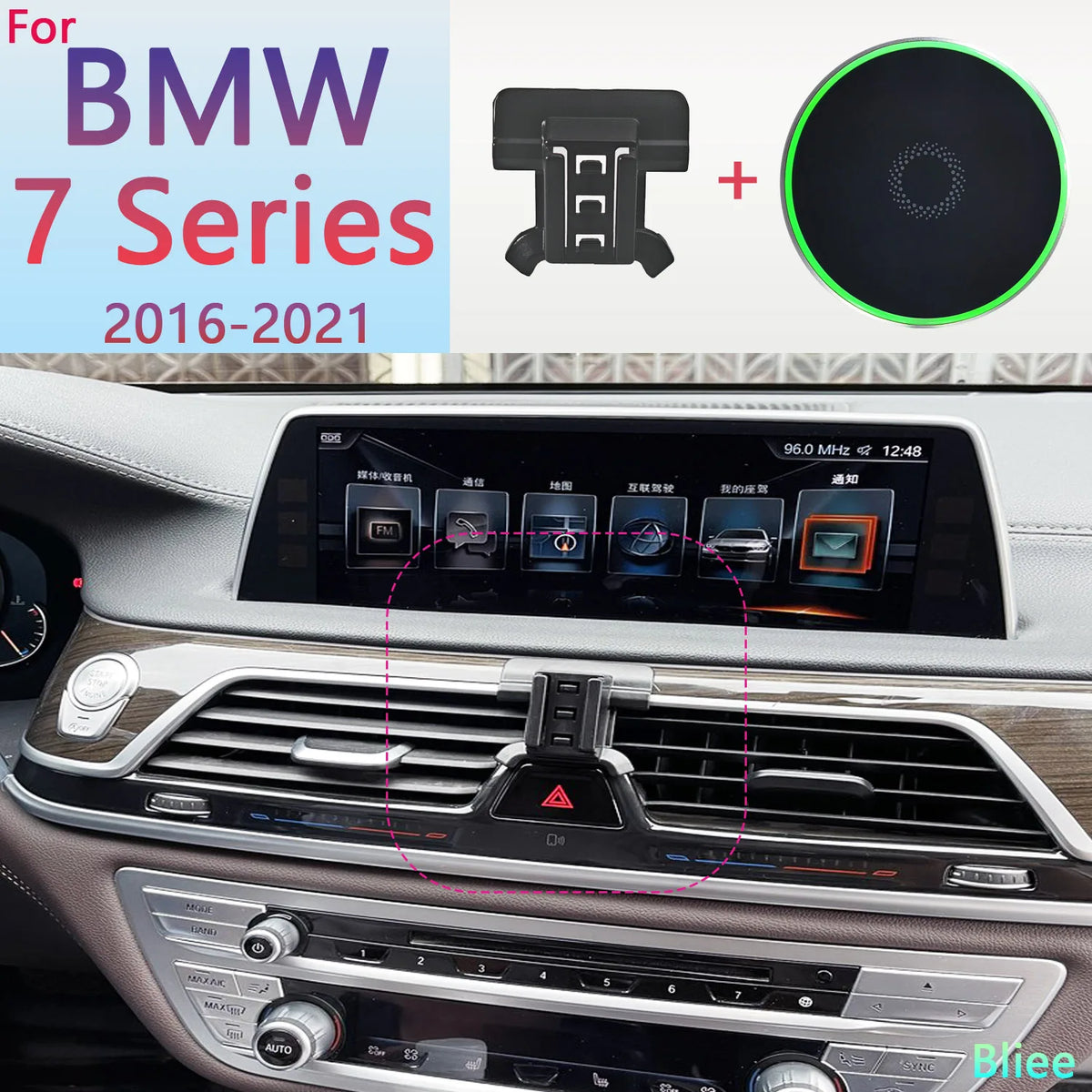 BMW 7-serie Trådlös Biltelefonhållare med en 15W MagSafe Bas är den premium körkompanjonen du behöver för säker montering och enkel laddning. Speciellt designad för BMW 7-serie modeller (730i, 740i, G11) från 2016 till 2021, placerar denna magnetiska hållare din telefon på den ideala platsen för enkel visning, snabb åtkomst och säker navigering medan du är på vägen. Basen integrerar trådlös laddning, vilket minskar kabeltrassel och håller din enhet laddad medan du kör.