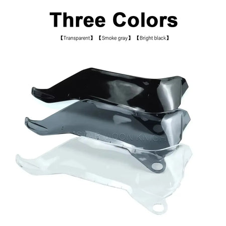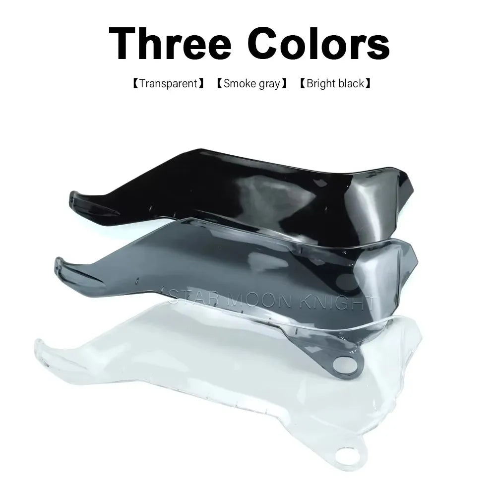 Färgalternativ inkluderar blank svart, Smoke gray (blåaktig) och transparent. Denna annons gäller för ett enda par handskydd, redo att anpassa din motors cykels skydd och stil.