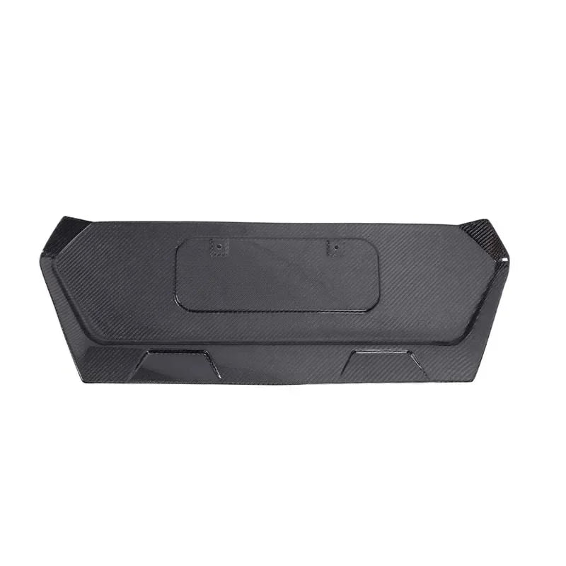 - Lägger till en förfinad kolfiberaccent till området runt bakre nummerplåten för ett sportigare utseende.