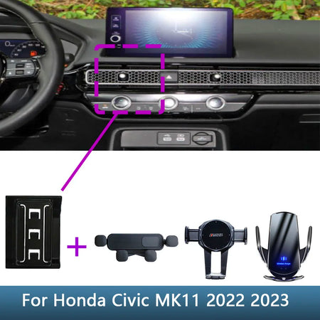 Honda Civic 11:e generationen trådlös laddningshållare för biltelefon — en skräddarsydd monteringslösning designad för att passa din Honda Civic 11:e generationen med precision. Tillverkad av hållbar ABS, kombinerar denna bas ett säkert grepp med smart trådlös laddning för en oreda-fri körupplevelse.