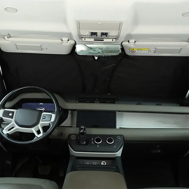 Lätt att installera och förvara, ger den en tät passform bakom vindrutan, hjälper din klimatanläggning att fungera mer effektivt och håller kupén svalare även när fordonet är parkerat i direkt solljus. Denna tillbehör tillverkas i en ISO9001-certifierad fabrik och exporteras över hela världen, vilket säkerställer pålitlig kvalitet för Defender-ägare.