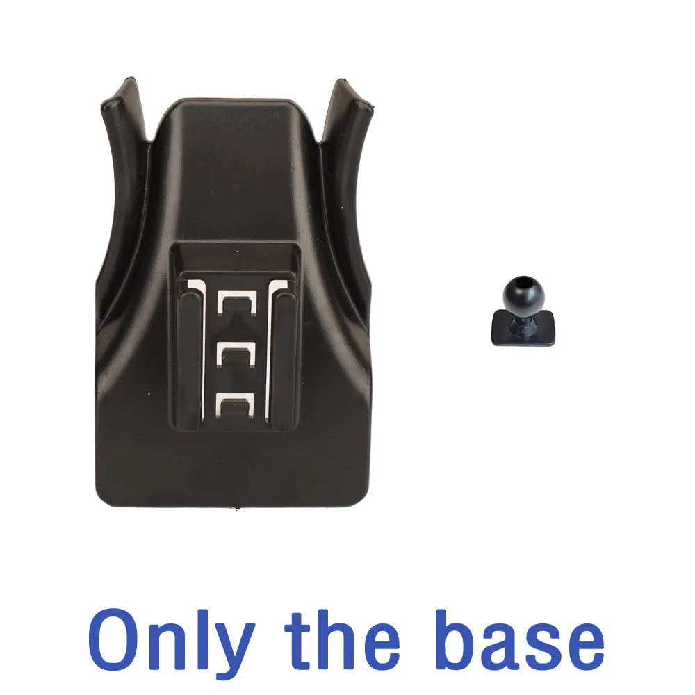 Basen har en 17mm svängbar anslutning för justerbara visningsvinklar, vilket gör att du kan positionera din telefon för GPS-navigering, handsfree-samtal och snabb åtkomst utan distraktion.