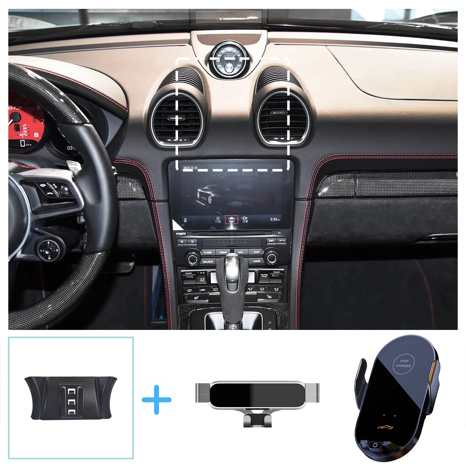- Modell / Typ: Porsche 718 Trådlös Laddnings Telefonhållare Gravitation Ställ