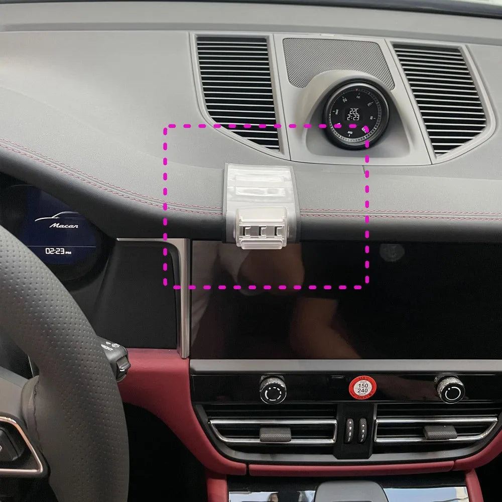 Tillverkad av hållbar ABS, ger denna hållare ett säkert grepp och ett elegant, premiumutseende som kompletterar ditt fordons interiör. Basen är speciellt anpassad för Porsche Macan-modeller för att säkerställa en exakt passform. Vänligen bekräfta att din bil matchar modellen som visas i listningsbilderna eller videon för bästa resultat. Den har en 17mm svängbar anslutning för flexibla visningsvinklar och enkel justering medan du kör.