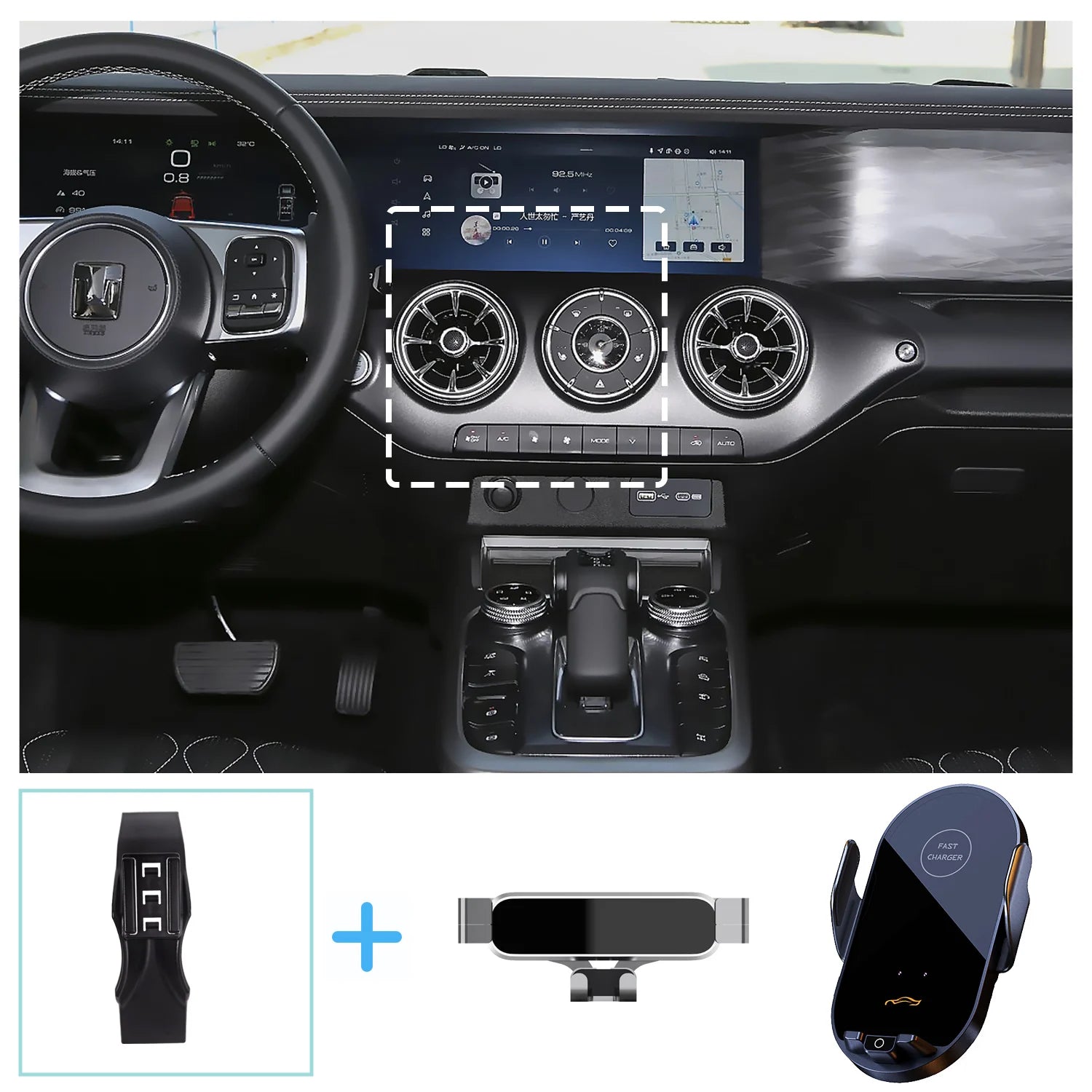 Vi presenterar Tank 300 Biltelefonhållare Trådlös Laddning Gravitation Ställ — en specialbyggd monteringslösning som är speciellt utformad för din Tank 300 (2022–2024). Denna gravitationbaserade telefonhållare säkrar din enhet med en enkel nedsläppningsåtgärd, vilket låter dig hålla båda händerna på ratten och ögonen på vägen. Den inbyggda trådlösa laddningen håller din telefon strömad medan du kör, vilket eliminerar oreda från laddningskablar när du är på språng.