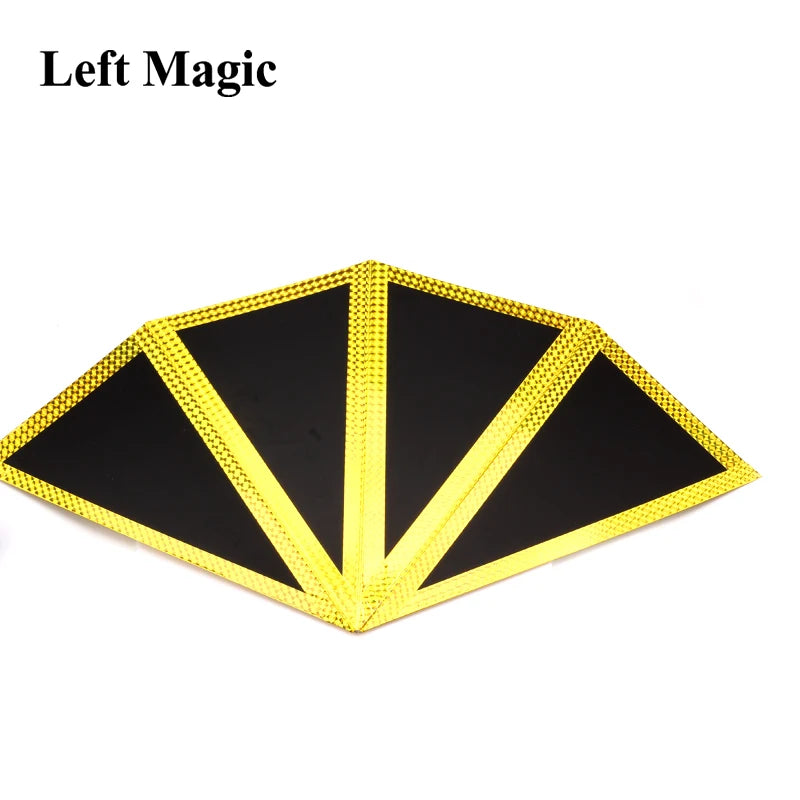 Utövarna förklarar de fyra triangulära skärmarna som är kopplade tillsammans, vilket är ett plan. Kommer att vara fyra triangulära skärmar omgivna av en fyrkantig tratt, som kan ändras i blomman, sjalar, papperspengar eller små dragblommor och andra föremål. Lämplig för närstående eller scenframträdanden, kan omges av publiken. Tips: skicka dragblomman tillsammans som present |