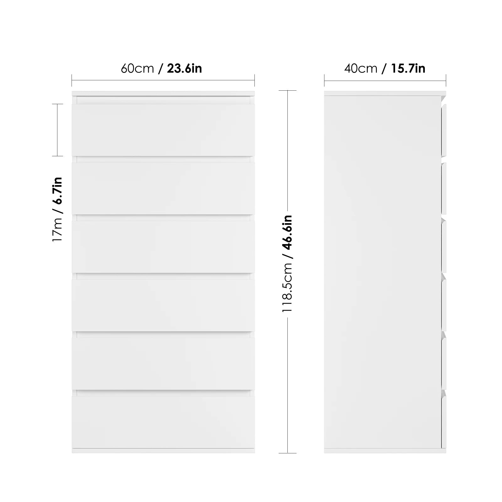 Getone Hög 6 Lådor Bröst Vit Svart Sovrum Förvaring