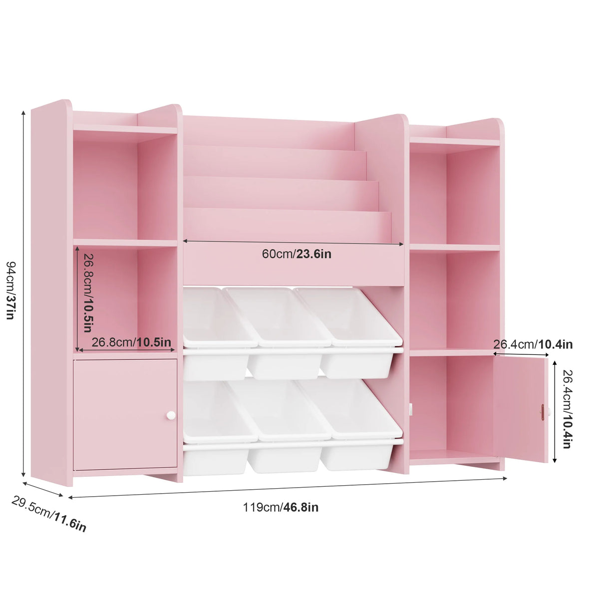 Introducerar Getone Kids leksaksförvaringsenhet, ett charmigt vitt/rosa förvaringsskåp designat för att hålla ett barns lekområde prydligt och inbjudande. Tillverkat av högkvalitativt trä och plast, har denna robusta enhet 8 avtagbara lådor för flexibel organisering av leksaker, böcker, filtar och konstmaterial. Den öppna designen låter små händer enkelt se och nå föremål, medan lutningsskyddet lägger till ett säkerhetslager för att skydda nyfikna barn. Med en fyravåningslayout och totala mått på 119 cm (L) x 29,5 cm (B) x 94 cm (H) är enheten anpassad för barn, vilket hjälper dem att lära sig att städa och ta ansvar för sin egen plats. Perfekt för barnrum, lekrum, förskolor och lekområden, kombinerar den praktisk förvaring med ett vänligt, barnvänligt utseende. Montering är enkel, och paketet inkluderar installationsanvisningar och tillbehör för att underlätta föräldra-barn-byggande och samarbetslek.