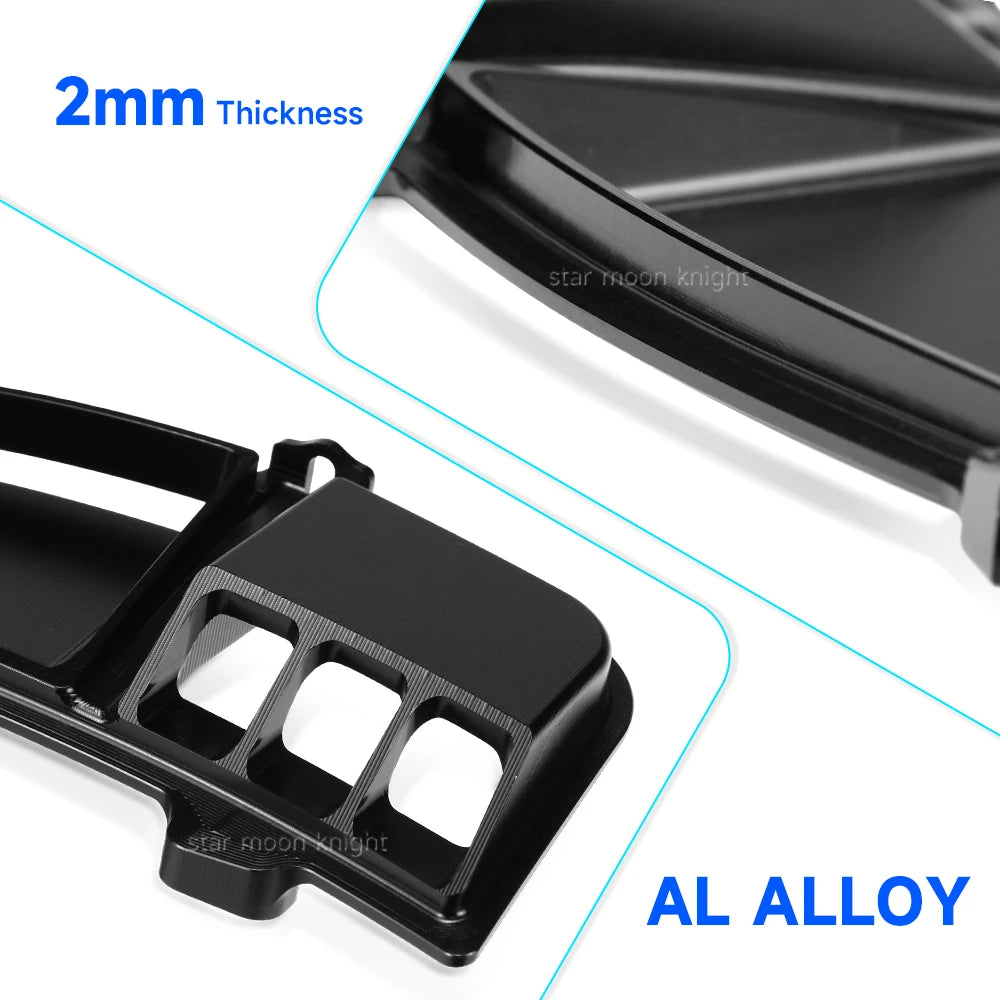 Vespa GTS 300 Radiatorskyddsgaller för luftintag är ett hållbart skydd som är utformat för att skydda din radiator från stenar, skräp och väggrus samtidigt som det optimerar kylprestandan. Helt tillverkat av billet aluminium, är dessa sidoluftintagsgaller designade med vätskedynamik i åtanke för att förbättra luftutlopp och värmeavledning för radiatorerna. Kompatibelt med Vespa GTS125 Sei Giorni, samt flera GTS-modeller från 2023 och 2024, hjälper detta skydd till att bibehålla motoreffektiviteten vid dagliga pendlingar eller helgturer. Välj mellan svart, silver, titan eller rött för att passa din motors stil. Märke: Star Moon Knight. Skick: 100 % helt ny.