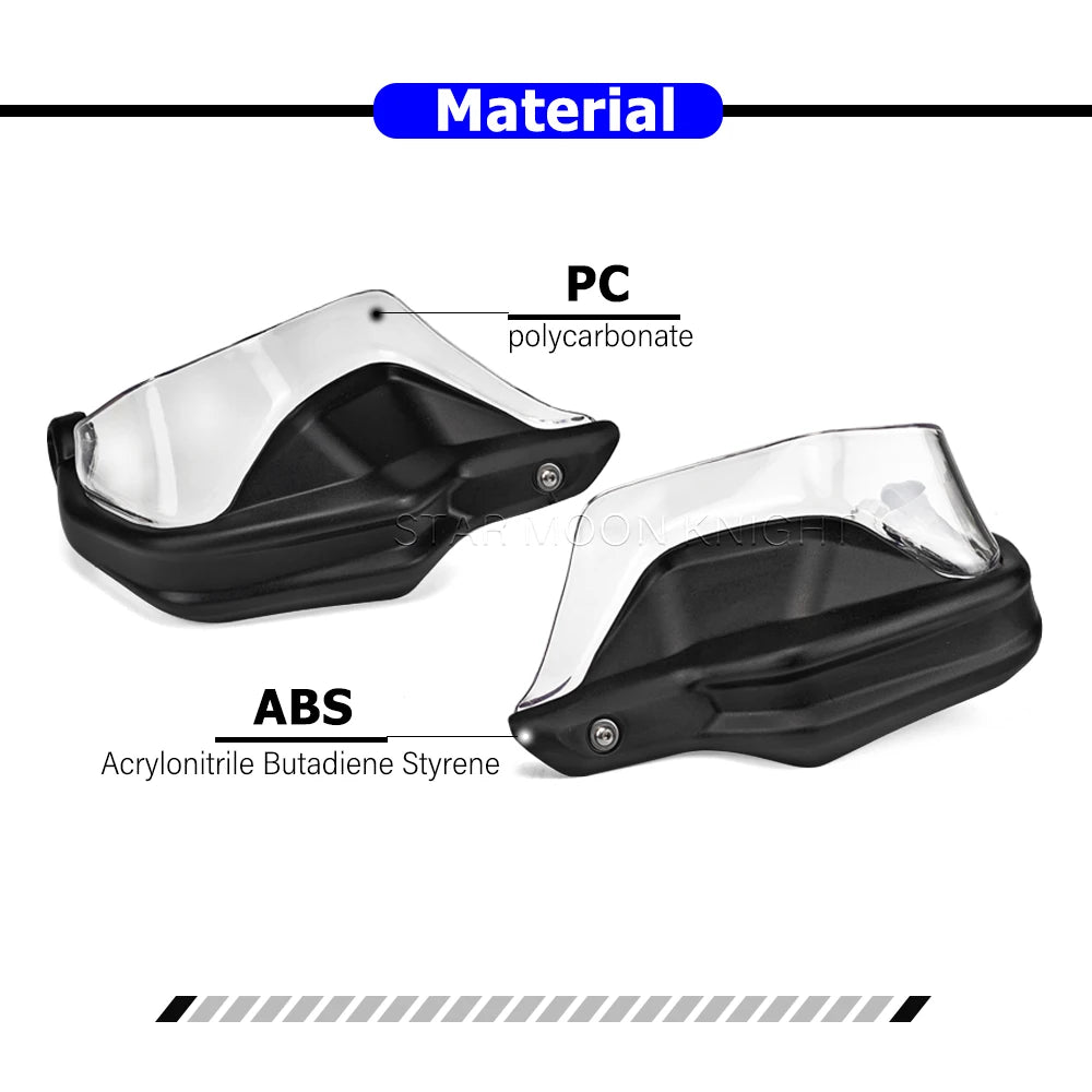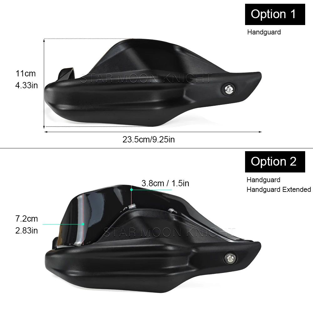 Dessa handguard-förlängningar är aerodynamiskt formade och byggda av stöttålig och UV-beständig plast. De är lätta men starka, med hög styvhet och draghållfasthet, utmärkt temperaturbeständighet och en briljant glansig finish som motstår elementen och håller din motorcykel snygg körning efter körning.