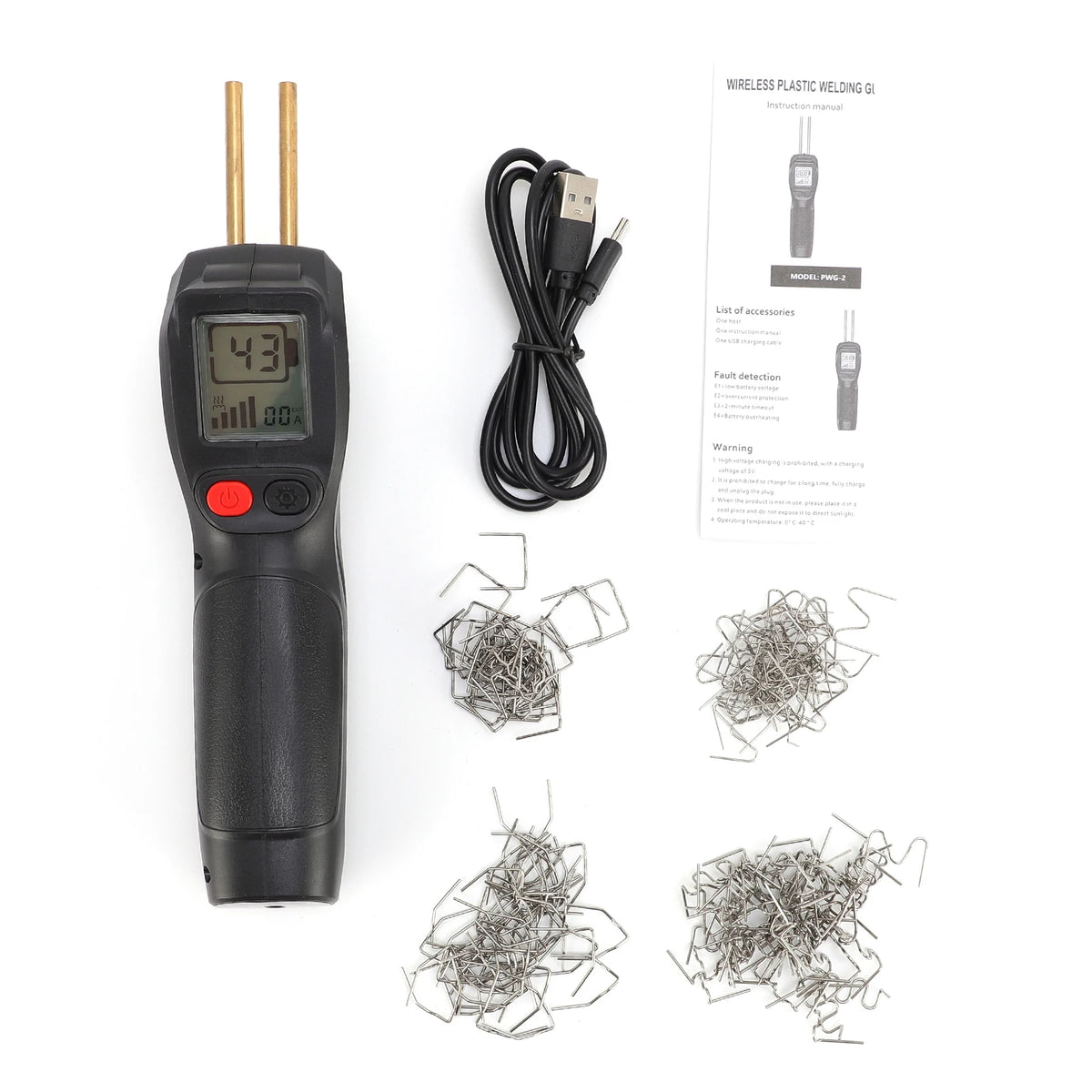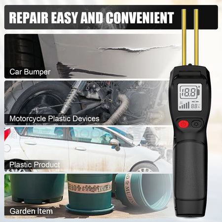 Dess mångsidighet täcker ett brett spektrum av plastreparationsjobb — från bilbumprar, instrumentbrädor och ljusfästen till plaststolar, förvaringslådor, trädgårdsverktyg och mer. Kitet inkluderar 200 svetsnaglar, så att du är redo att börja reparera direkt. Ladda bekvämt med den medföljande Type-C-kabeln och övervaka ström och spänning på LCD-displayen för konsekventa resultat.