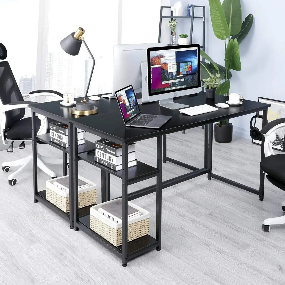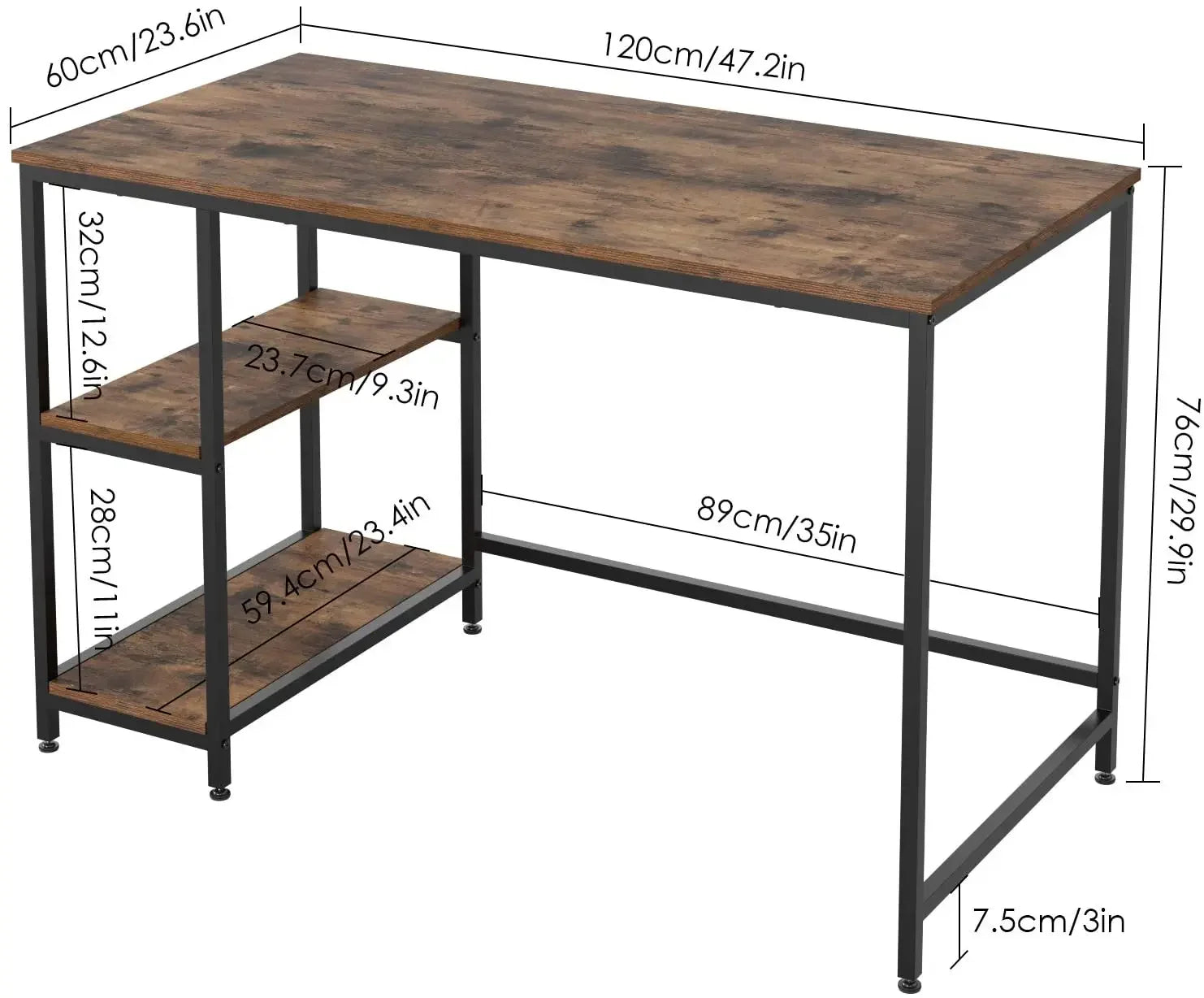 - Mångsidig arbetsuppställning: Idealisk för datorarbete, studier eller som en kompakt hemmakontorsstation med lättillgänglig förvaring på hyllorna.
