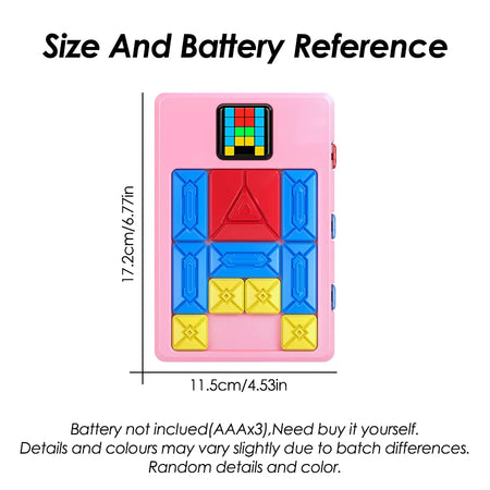 Designad för barn i åldern 6–12 år, stärker detta handhållna pussel kritiskt tänkande, mönsterigenkänning och finmotorik när små problemlösare skjuter block längs en bana. De magnetiska sugblocken håller bitarna på plats för en smidig och tillfredsställande framgång, minskar frustration och hjälper barn att hålla fokus på utmaningen. Lätt (cirka 250 g) och kartongförpackad för säker frakt från Fastlandskina, är det en perfekt resekompis och klassrumsaktivitet. Observera: batterier ingår inte, så den grundläggande glidfunktionen är redo att användas direkt ur lådan. Tillverkad av robust plast med elektroniktillbehör, är leksaken byggd för att tåla regelbunden användning samtidigt som leken är säker och engagerande.