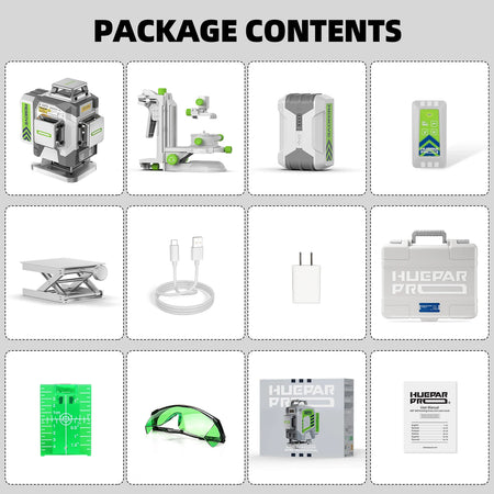 Huepar 4D Korslinjelaser med Självnivellerande Grön Stråle, 2mm Noggrannhet