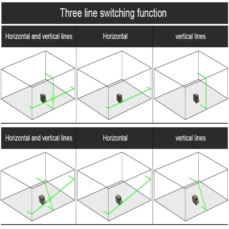 Byggd för verkliga arbetsplatser, erbjuder denna laser automatisk självnivellering inom ett 4°±1° intervall och en noggrannhet på ±2 mm vid 10 m. Den robusta IP54-klassade kroppen står emot damm och fukt, medan Osram gröna laser-enheten bibehåller stark prestanda i temperaturer så låga som 14°F (-10°C). En enkel knapptryckning låter dig snabbt växla mellan korslinjer, horisontella och vertikala linjer, vilket gör installationen snabb och intuitiv.