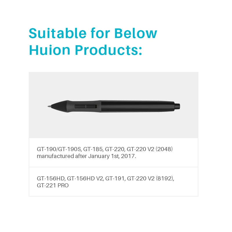 - Kompatibilitet: Huion penndisplayer GT-190/GT-190S/GT-185/GT-220/GT-220 V2 (2048)/GT-156HD/GT-156HD V2/GT-191/GT-221 PRO (tillverkade efter 2017)