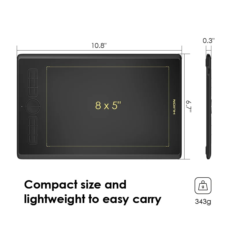Möt HUION Inspiroy H610X—en ultrabärbar, batterifri penntablett byggd för Android OS och plattformsövergripande kreativitet. Den ger en naturlig penna-på-papper känsla med ett stort ritområde på 10 x 6,25 tum, 8192 trycknivåer och lutningsstöd upp till ±60°. Den batterifria PW100-stylusen, 8 programmerbara genvägstangenter och en smal 8 mm profil gör den idealisk för skissande, antecknande, onlineundervisning och professionell design på språng.