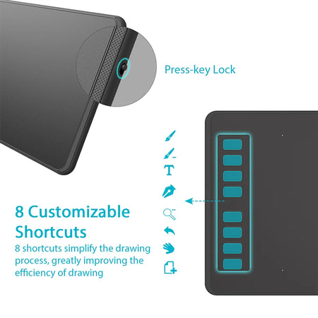 - Öka produktiviteten med 8 användardefinierade genvägar. Använd press-lås funktionen för att förhindra oavsiktliga beröringar och växla enkelt mellan verktyg—ideal för både vänster- och högerhänta användare.